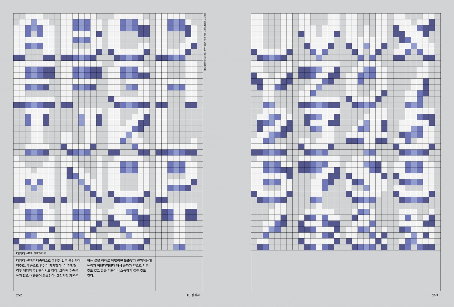 영국 타이포그래피 회사 모노타입에서 글꼴 디자이너로 일하는 오마가리 토시는 이 책을 쓰기 위해 약 4,500종의 게임을 조사했고, 250여 개의 픽셀 글꼴과 408편의 일러스트레이션을 수록해 다방면의 타이포그래피를 모았습니다. ‘산스체’ ’세리프체’ ‘MICR체’ 등 글꼴별로 장을 분류하고, 픽셀 폰트의 전성기부터 쇠퇴기까지 읽을거리를 더했다고 합니다. |