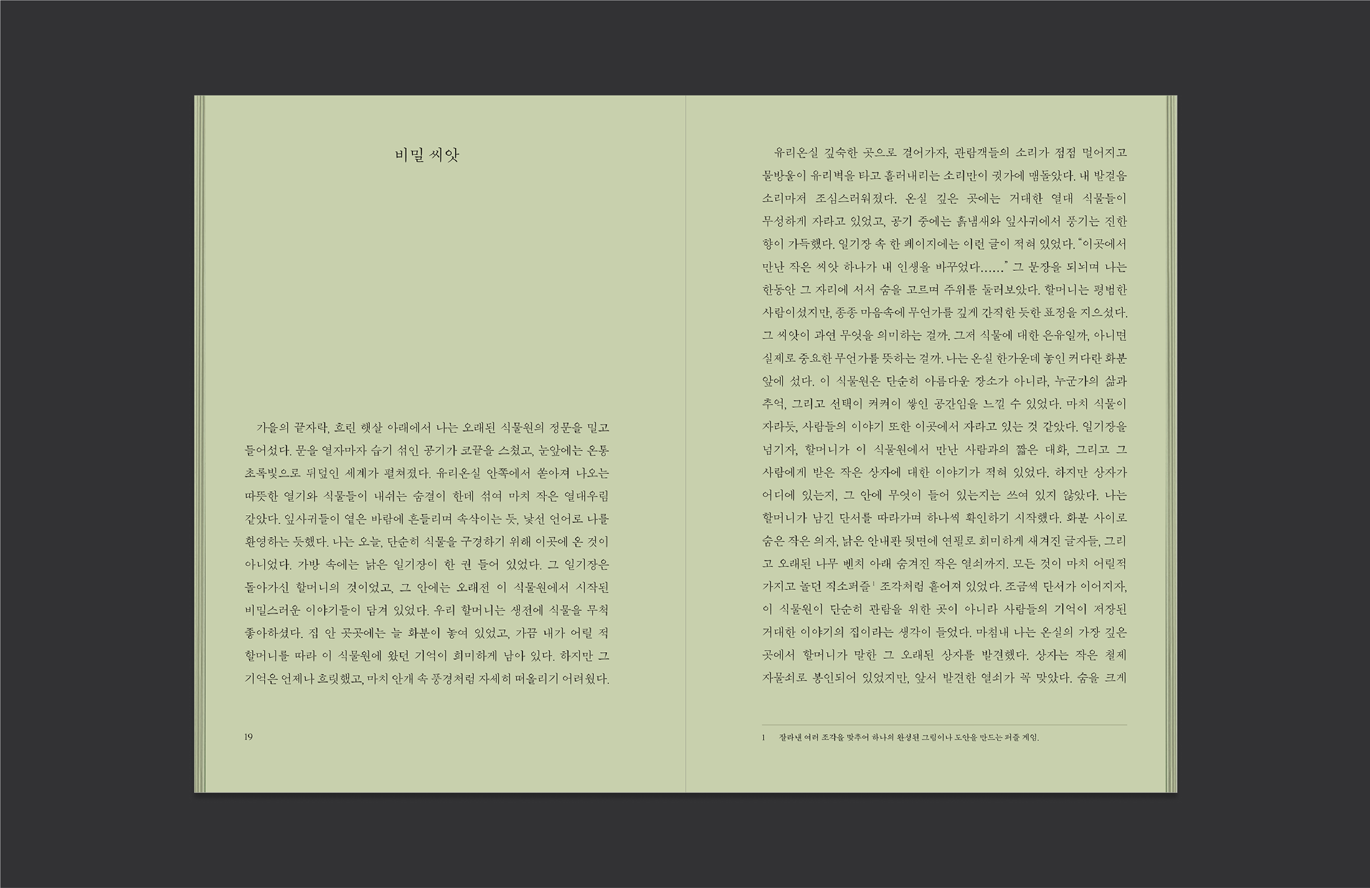 독자가 편안하게 내용을 따라갈 수 있습니다. 또한 균형 잡힌 획 대비와 자간은 장시간 읽기에도 피로감을 줄입니다.